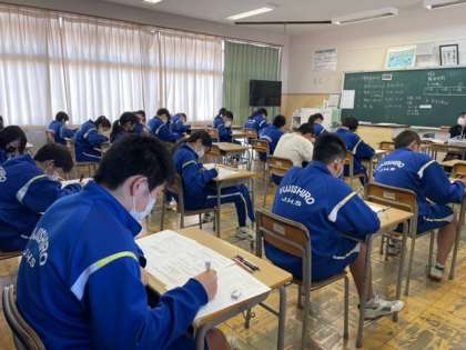今日は1.2年生は学年末テストです。真剣に取り組んでいます。