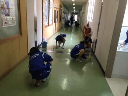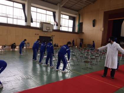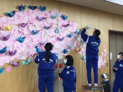 お世話になった3年生のために、1・2年生が校舎内外や体育館などの準備をしてくれています。