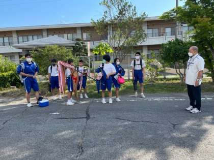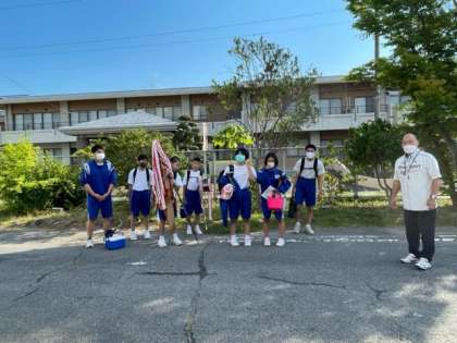柔道部が出発しました。頑張れ藤代中。