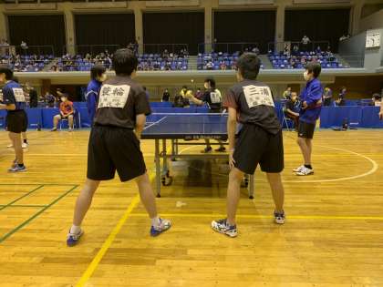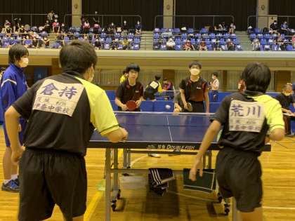 卓球男子ダブルスが始まりました。頑張れ、藤代中。