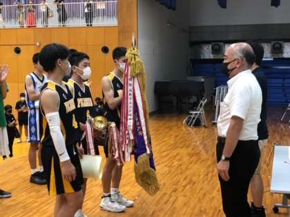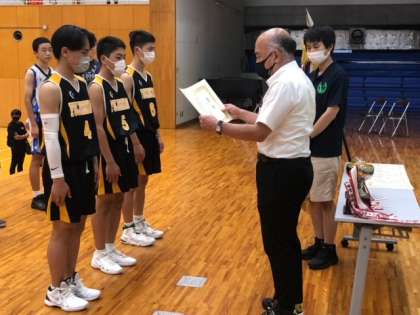 バスケットボール部の表彰式です。