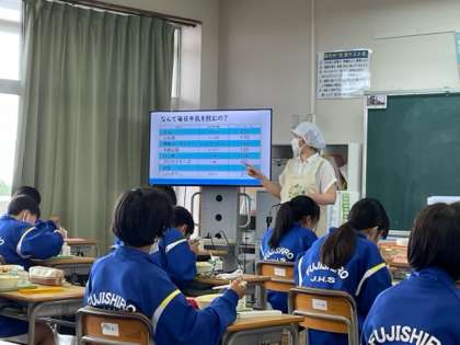 給食センターの加藤先生よる栄養指導の様子です。