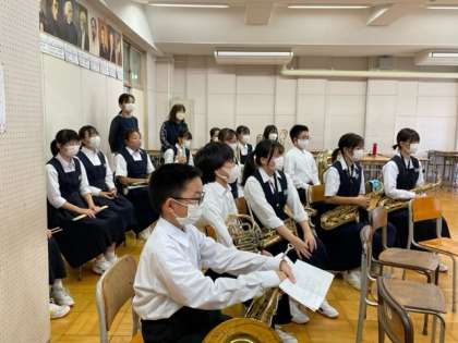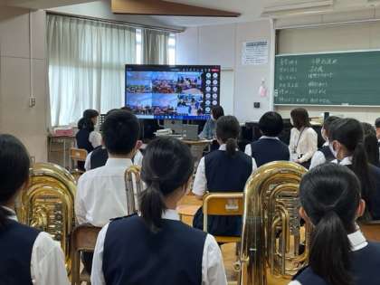 藤代中学区の小学校とオンラインで吹奏楽の演奏会を行いました。