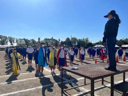 体育祭の予行演習を行いました。 みんな本番さながら一生懸命頑張っています。