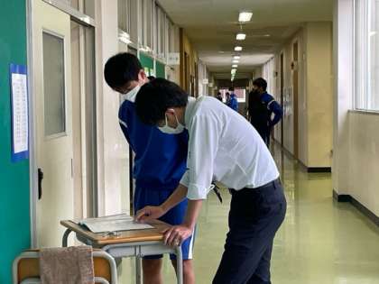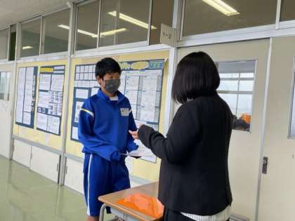 本日は1学期最終日となります。通知表を一人一人受け取っています。
