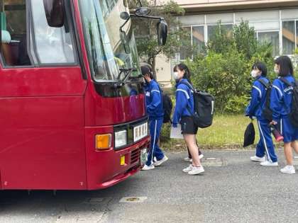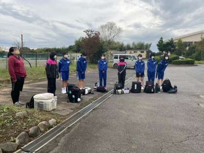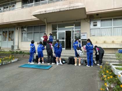 卓球部女子が出発しました。石岡体育館で行われます。頑張れ藤代中。