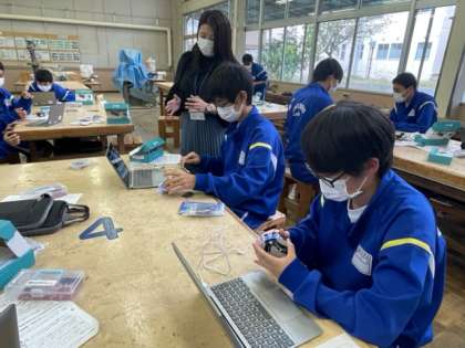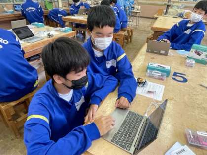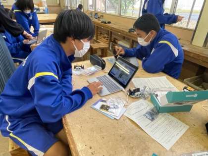 3年生の技術の授業では、プログラミングでロボットを動かしています。
