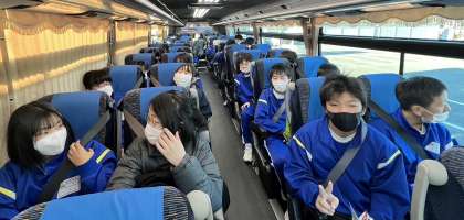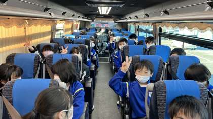 バスでは朝の会を行い、映画などを見始めました。