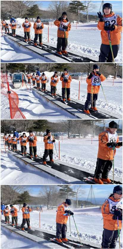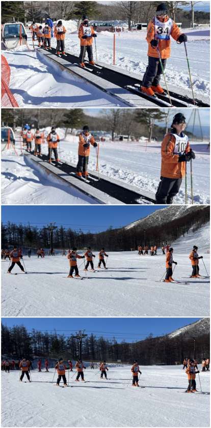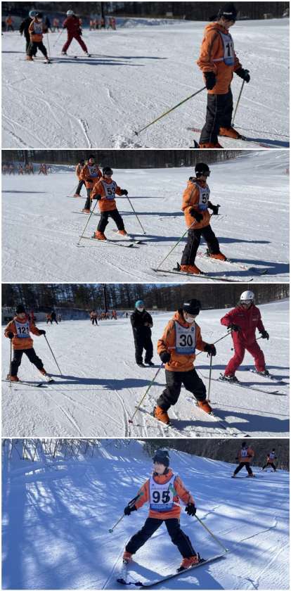 初めてスキーの生徒も上手に滑っています。