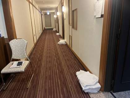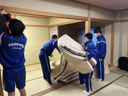 最終日の朝は布団の片付けから始まりました。 どの班もしっかり片付けてました。