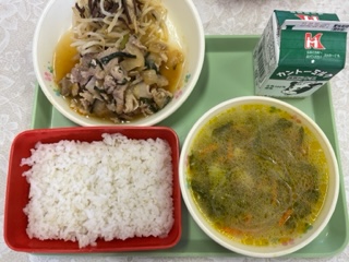 今日の給食の献立は 麦ご飯 牛乳 プルコギ もやしときくらげのサラダ 春雨スープ です。 カロリーは、787㎉です。