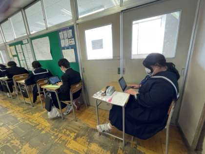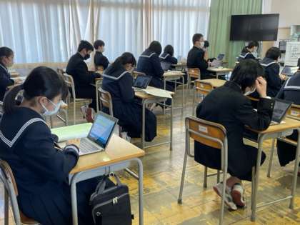 2年生の総合的な学習の時間では、高校調べをしています。興味のある高校について調べています。