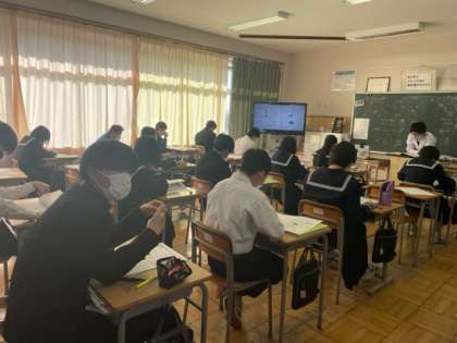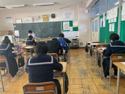 3年生の理科では、単元テストの解説を行っています。しっかり復習をして本番に臨んでください。