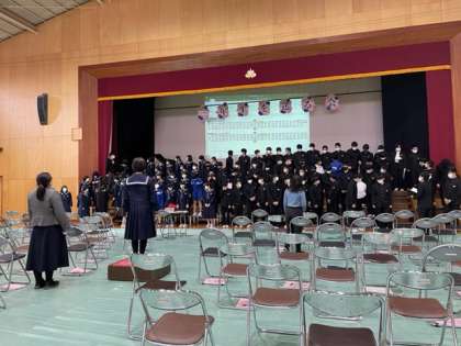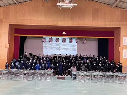 卒業式の練習が行われてます。今日は、歌の立ち位置や入退場等を練習しました。