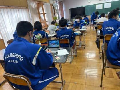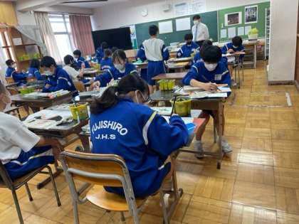 1年生美術科の授業では、絵を完成しています。カード作りに挑戦している生徒もいます。