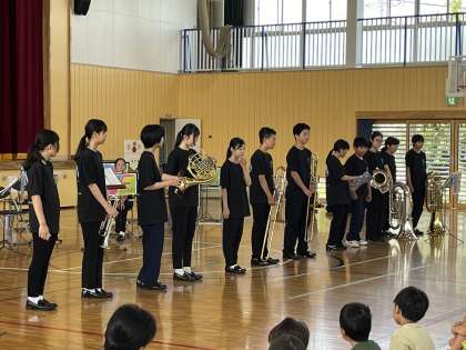 本日、吹奏楽部は宮和田小学校にお招き頂き、出前演奏会を行ってきました。