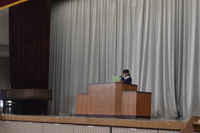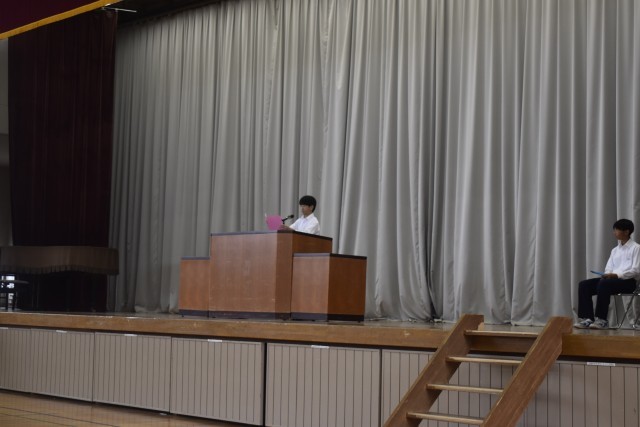 10月14 日(火)第2学期の始業式が行われました。代表作文を発表した1年生は「運営委員として頑張りたいこと」、2年生は「部活動の部長として頑張りたいこと」、3年生は「卒業に向けて頑張りたいこと」を発表しました。生徒会の代表生徒は「生徒会活動の充実 について」協力依頼を発信しました。それぞれ、2学期の新たな意気込みが伝わる話を堂々と伝える事ができました。