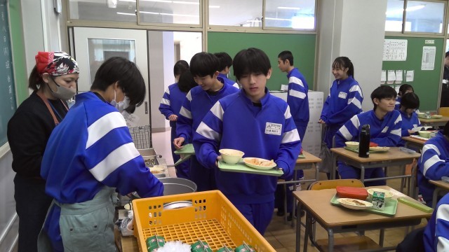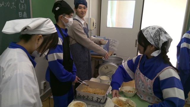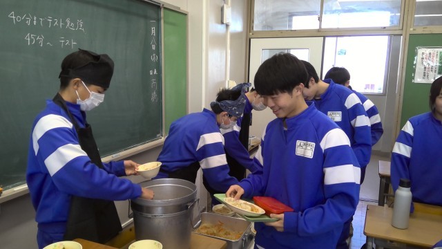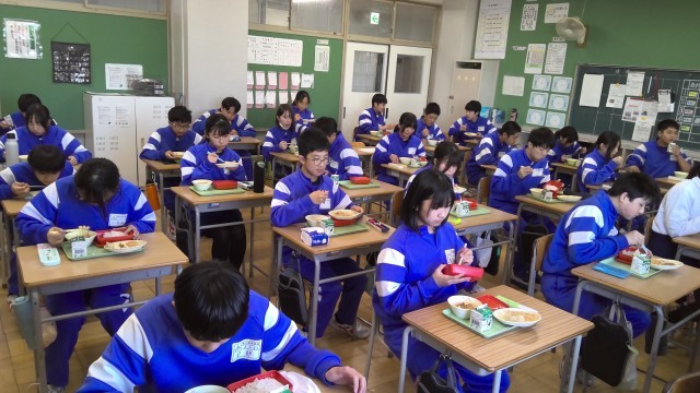 二週間ぶりの給食は餃子、麻婆豆腐、春雨サラダ、ご飯、牛乳です。当番が身支度をして、スムーズに配膳していました。学校再開初日の今日は、手がかじかむ寒さですが、暖かい教室で温かい食事がいただけてうれしいですね。