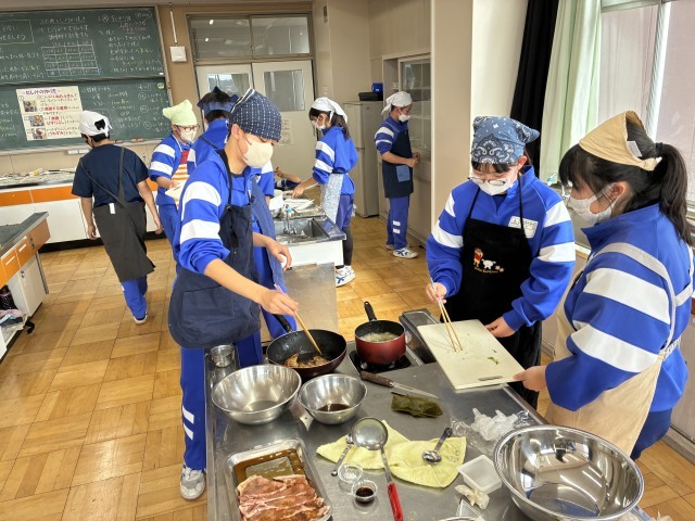 1年4組で調理実習を行いました。