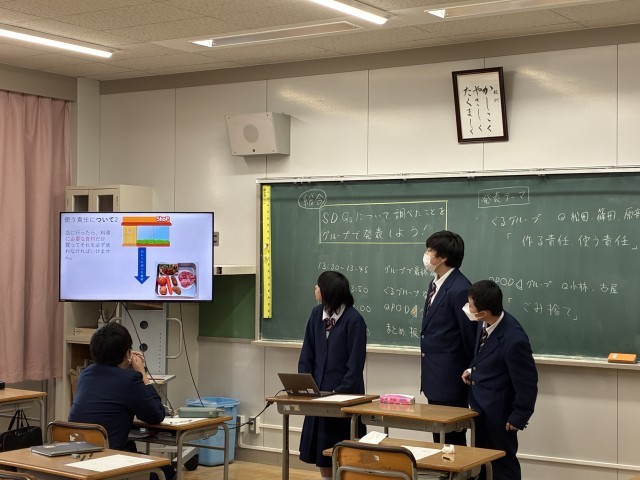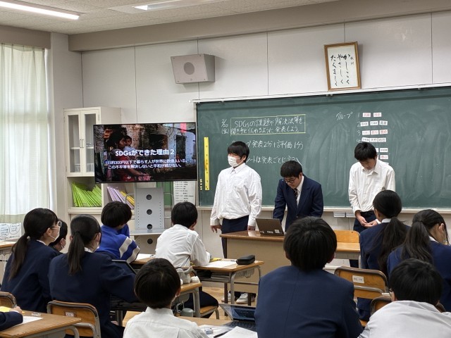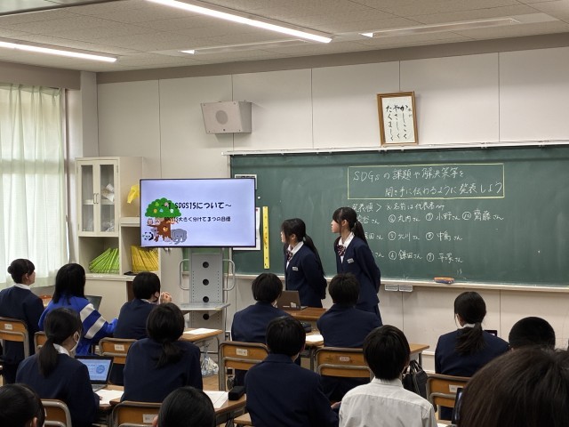 一年生では、今年度学習してきたSDGsに関する発表を行いました。