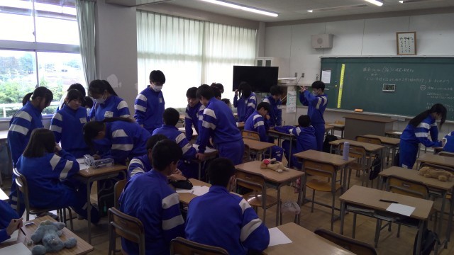 3月13日に実施予定の、藤代南中学校をよりよくするための全校生徒による話合い「藤南フォーラム」では、各クラスから二つの提案をします。まずはグループで考えを練り、学級委員が司会をして案を検討しています。