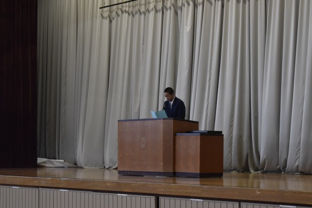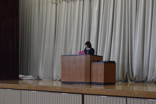 本日、表彰式並びに修了式を実施しました。表彰式では日々の学習や部活動、各種活動において努力を重ね、優れた成果を収めた生徒が表彰され、その姿から一人一人の成長と頑張りが感じられました。続いて行われた修了式では、各学年の代表生徒による作文発表がありました。こ一年間を振り返り、努力したことや仲間との思い出、そして今後の目標について堂々と発表する姿が大変印象的でした。生徒たちの言葉からは、それぞれの確かな成長を遂げていることが伝わっていました。
