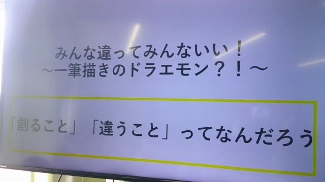 今日は、ガイダンスで「創ること」と「違うこと」を、ドラえもんの一筆書きで考えています。