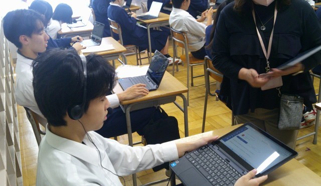 今日は、来週実施される全国学力・学習状況調査の英語(話すこと)のプレテストを行っています。