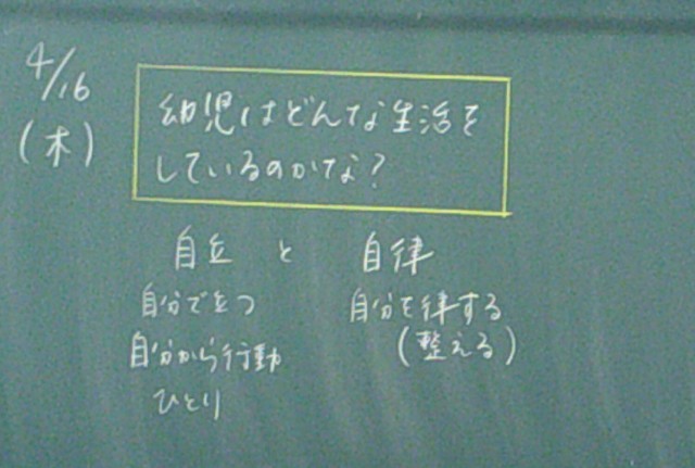 今日は、幼児はどんな生活をしているか、自分自身の昔の姿を思い出しながら考えています。