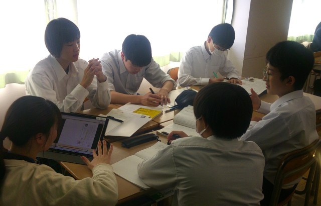 今日は、題名に込められた筆者の思いについて、グループで検討しています。