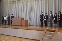 4月8日(水)、すっきりと晴れた肌寒い朝、藤代南中学校です
