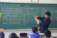 1年生の社会の授業です。地理分野です。今日は、日本と世界の位置関係、姿について学...