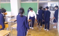 1年生の給食準備・配膳の様子です。授業終了後、10分以内に配膳が始まっています。...