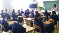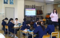 2年生の英語の授業です。1階の英語室で授業を行っています。今日は、これからするこ...