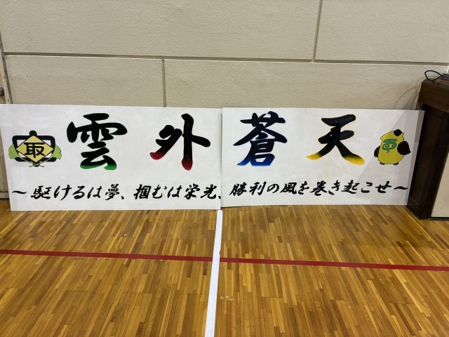 本日、6校時に体育祭結団式が実施されました。実行委員長の関口さんからスローガン発表、美術部から横断幕の披露がありました。このスローガンと横断幕のもと、一致団結して最高の体育祭にしてほしいです。