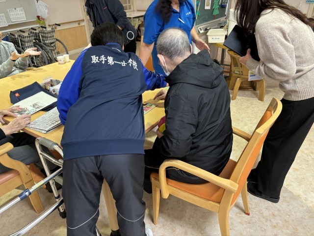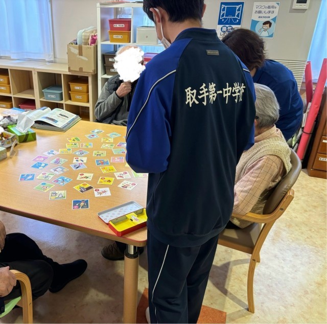 2年生職場体験(水彩館) 公開日 2025/11/21 更新日 2025/11/21 2年生 自分たちで用意してきた折り紙やかるた、紙風船を使ってコミュニケーションを取っていました。とても穏やな表情でお話していました。