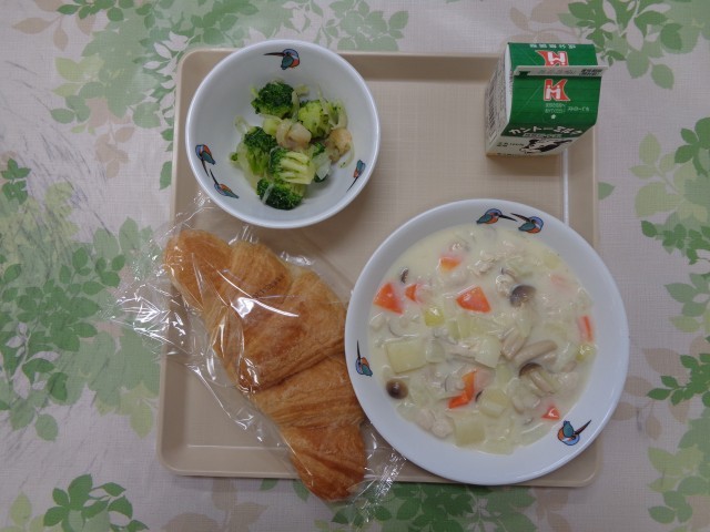 スクール・ランチ 公開日 2026/01/22 更新日 2026/01/22 食育 本日のメニューは、フランス料理でクロワッサン、牛乳、フリカッセ、えびのマリネでした。クロワッサンは、大きくて食べ応えがありました。フリカッセは、具だくさんでおいしかったです。えびのマリネは爽やかな味わいでした。ごちそうさまでした。