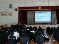 本日の5校時に、市議会議員の方々をまじえて、3年生が取手市をよりよくするための提...