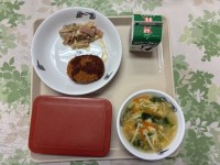 本日のメニューは、ご飯、牛乳、豚キムチ炒め、トックで、韓国風メニューでした。...