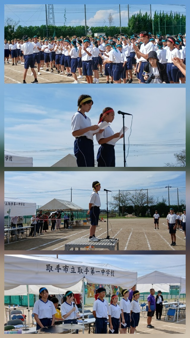 天候にも恵まれ令和7年度取手第一中学校第14回体育祭を予定通り実施いたします。昨日の雨で出来なかったところを朝に準備しました。保護者の皆様も応援よろしくお願いいたします。