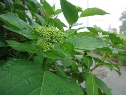 【写真】教委近くのアジサイ:現時点で色は不明:楽しみです!
