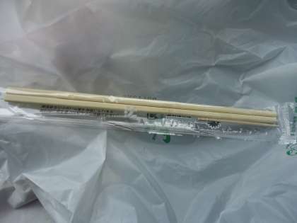 【写真上】のように,最近は割り箸の袋(特にコンビニ)が透明です。