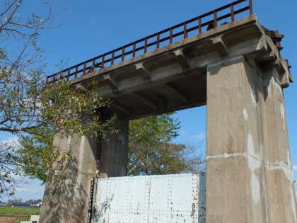 昭和の堰は,中之島にその一部が残されています。【写真下】