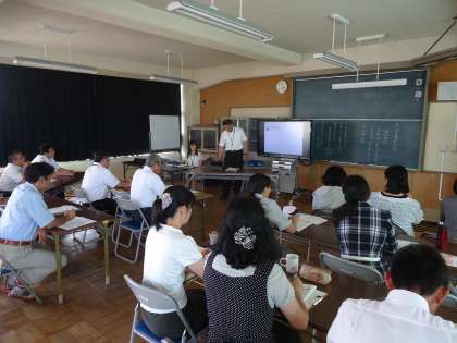 より良い授業の在り方を考えるため,学校と連携して研修を行っています。研修会では授業参観後に指導主事による助言等が行われます。