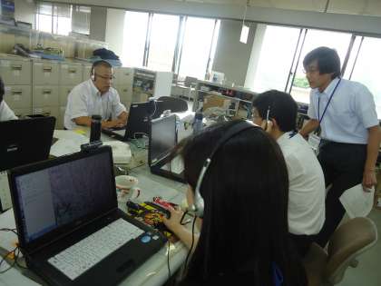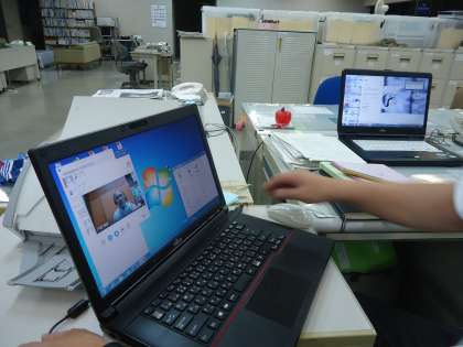 【写真】市教委で本システムを使って各学校と交流する指導主事