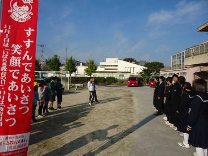 中学生と小学生とで共にすすめる挨拶運動です。
