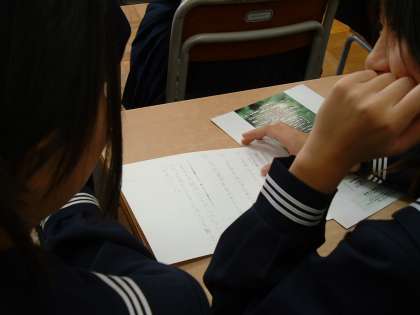 たとえば「イチローに関する資料」を読み,話し合ったあと,A子は「努力」という1語,B男は「夢」という1語を書きました。