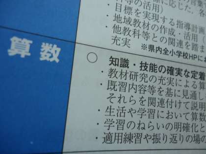 指導方針の小学校算数の項目には「適用練習」(の場の確保、つまずきの指導)が明記されています。(写真上の一番下の行)