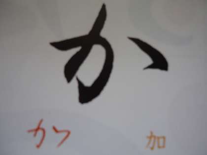 写真は、ひらがなの「か」の毛筆習字のお手本です。