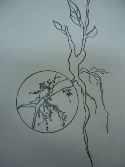 写真左のように「根の全体とその一部分の拡大」を書くスキルを教えておくと,生徒は科学的に細部を観察して書くことができます。